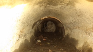 At the advice of our foster coordinator (on call at all hours of the night and day) Debbie Hines recommends that they leave the area in the hope that the puppies will come out of the pipe once they are gone.  When our Humane Officers return to the site to check on them later they are excited to find the puppies now outside the pipe but their arrival scares them right back into their “hidey hole” and out of reach.