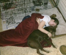 Melissa and MommaHer foster mom, Melissa clearly saw Momma’s specialness and fell in love with her immediately.  Sharing her delight through Facebook pictures of a constant companion, curling up with her and Momma’s head resting on her lap at every opportunity.  So much so that on her first night home, Melissa chose the floor beside Momma rather than her own bed.  That’s a great foster mom!